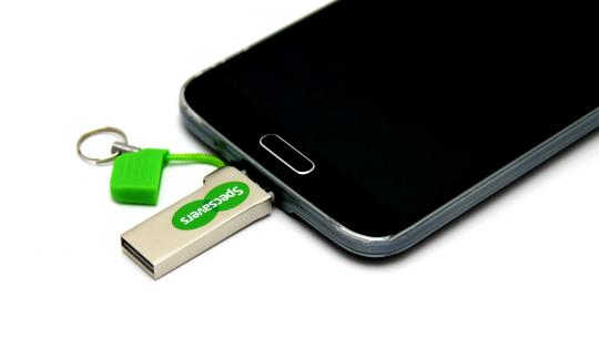 USB OTG steht für USB On-The-Go für Laptop, Notebook, Smartphone, Tablet und vieles mehr - ein USB-Stick mit zwei Anschlüssen - ebenfalls bedruckbar.