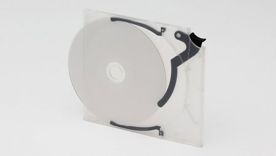 Mit einer Kickout-Vorrichtung wird die CD gehalten und aus der Verpackung geschoben. Ein Tastendruck genügt.