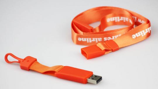 Mit einem Umhängeband (Lanyards) können Sie die USB-Sticks bequem um den Hals tragen oder befestigen. Auch bedruckte Lanyards sind möglich. Ebenfalls bestellbar sind Schlüsselanhänger aus Metall