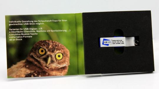 DigiPac für USB-Sticks mit Plastik- oder Schaumstoff-Tray. Indivuelle Anfertigungen je nach gewünschtem USB-Stick.